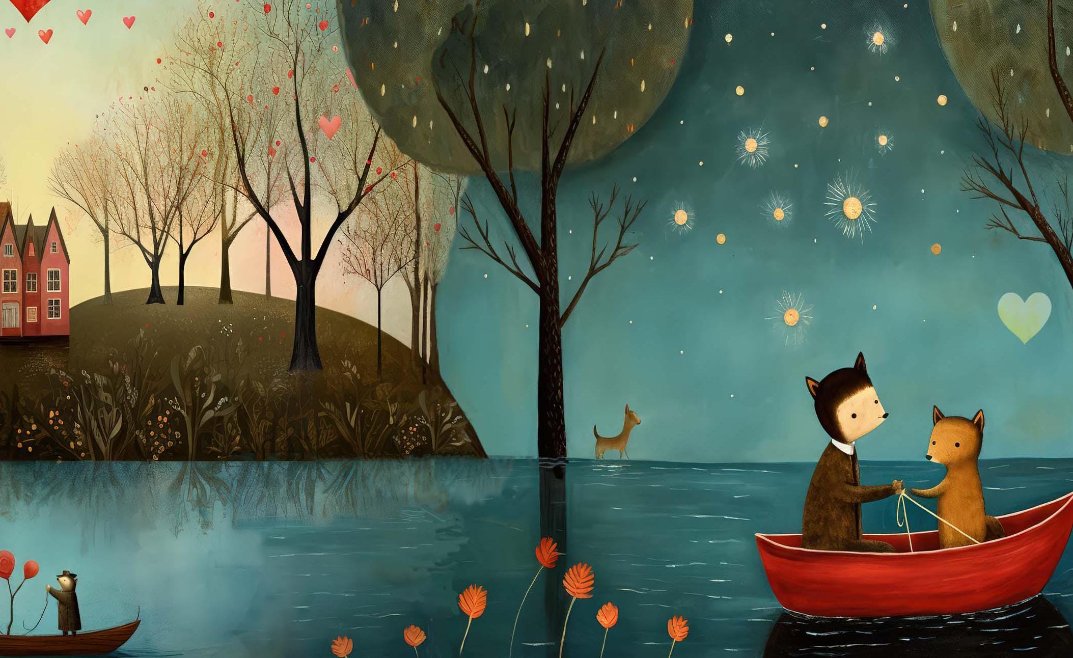 ๐ Title: "You Are My Today" โ Romantic Animals in Red Boat