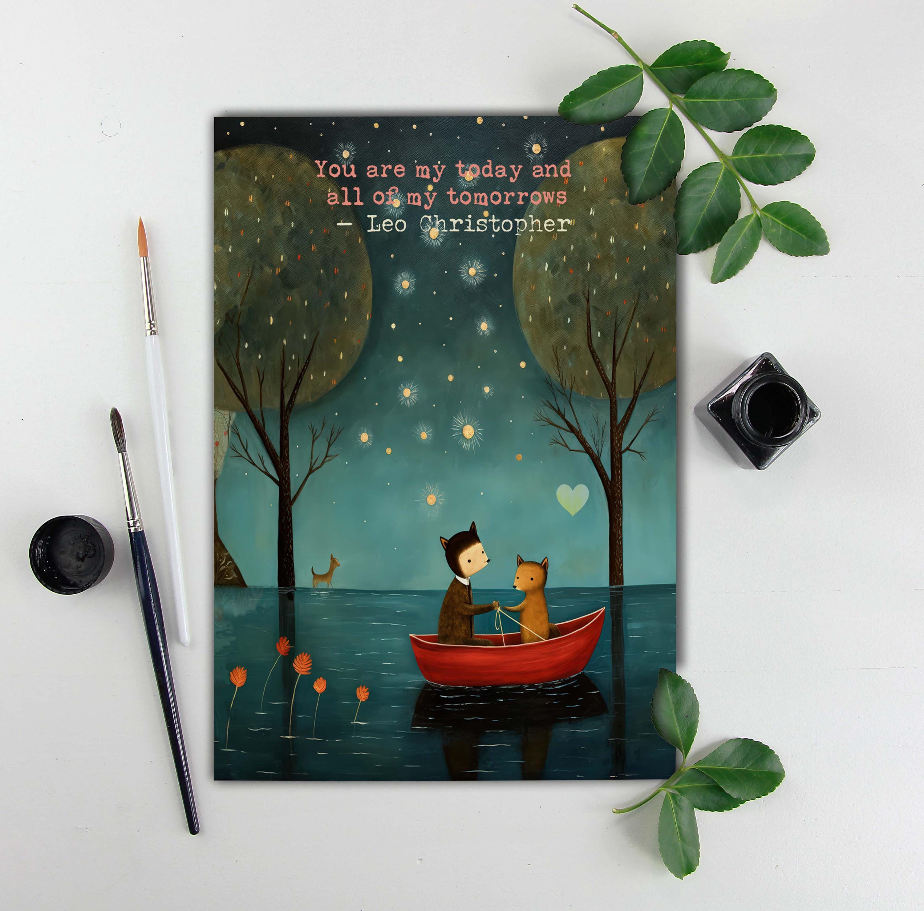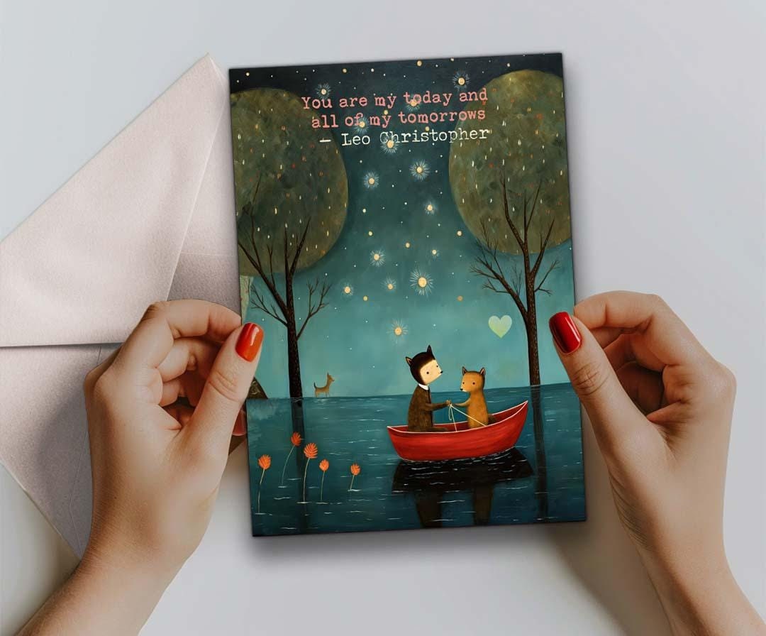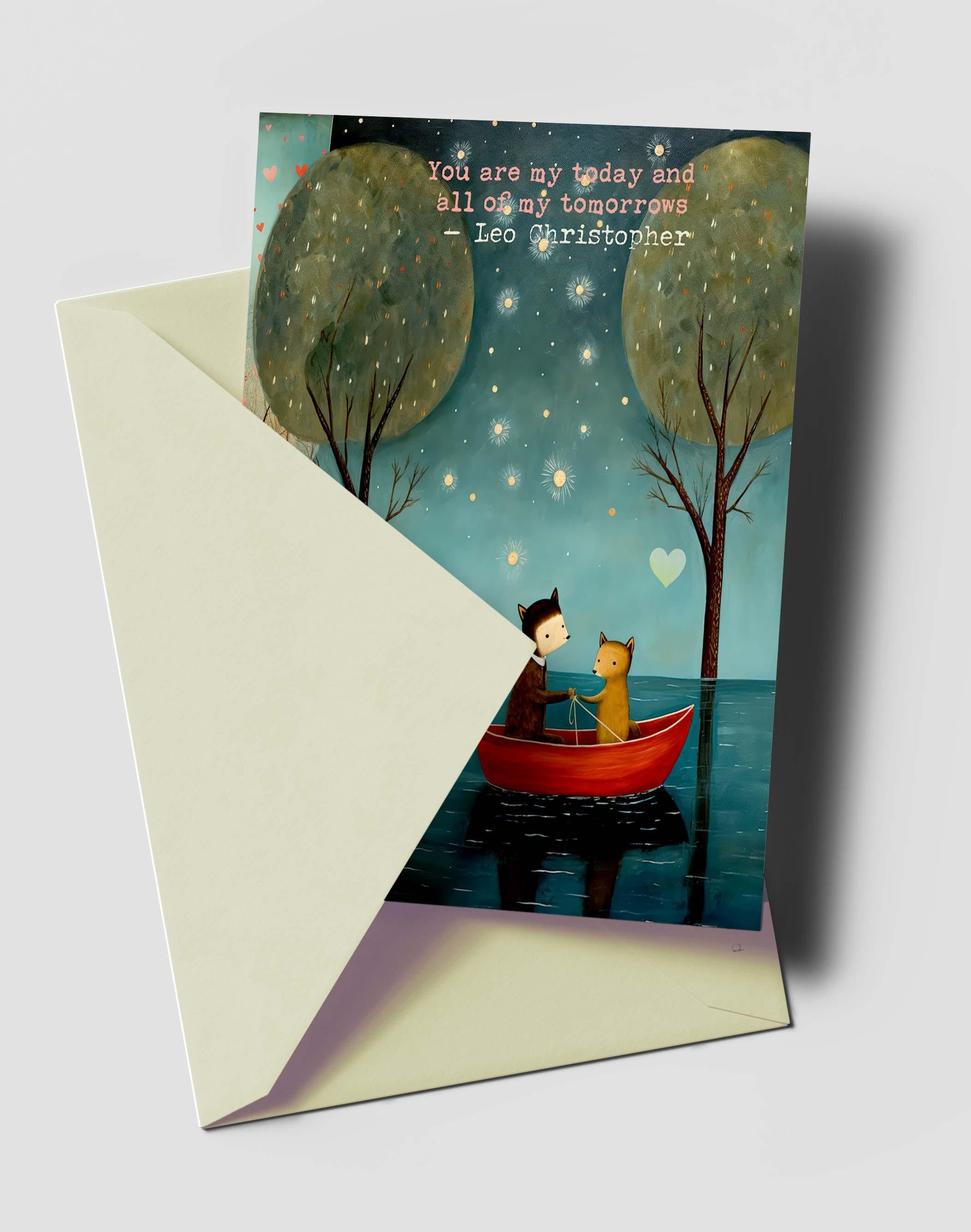 The heartfelt quote โYou are my today and all of my tomorrowsโ is featured making it the perfect sentiment for your loved one. This card radiates warmth, joy, and love, making it a delightful keepsake.