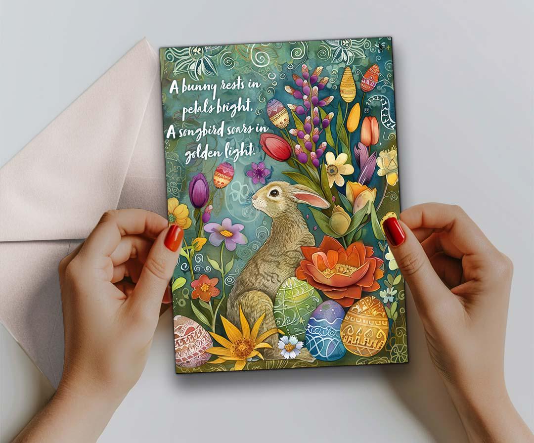 A charming, rhyming Easter quote is printed in the front, while the back offers a playful rhyme to complete the joyful messageโperfect for spreading smiles to loved ones!๐ท
