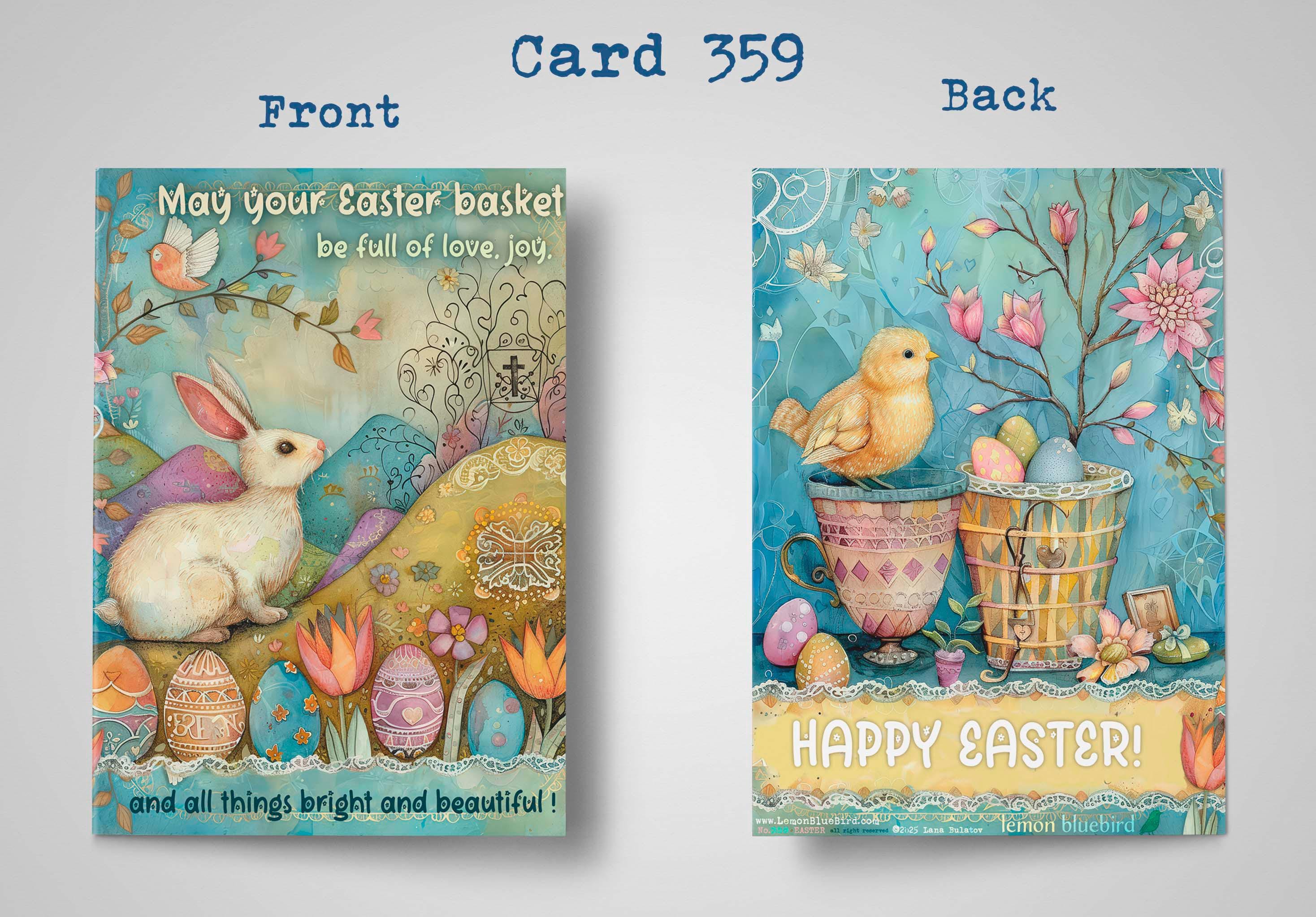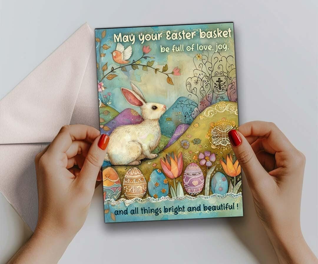 ๐ทPrinted on premium cardstock with soft pastel tones, this card brings a sense of springtime enchantment. The front features the heartfelt quote, โMay your Easter basket be full of love, joy, and all things bright and beautiful,โ making it a perfect way to send your Easter wishes.