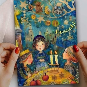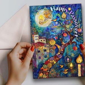 โคBright & Whimsical Passover Holiday Card โ Jewish-Themed Artwork