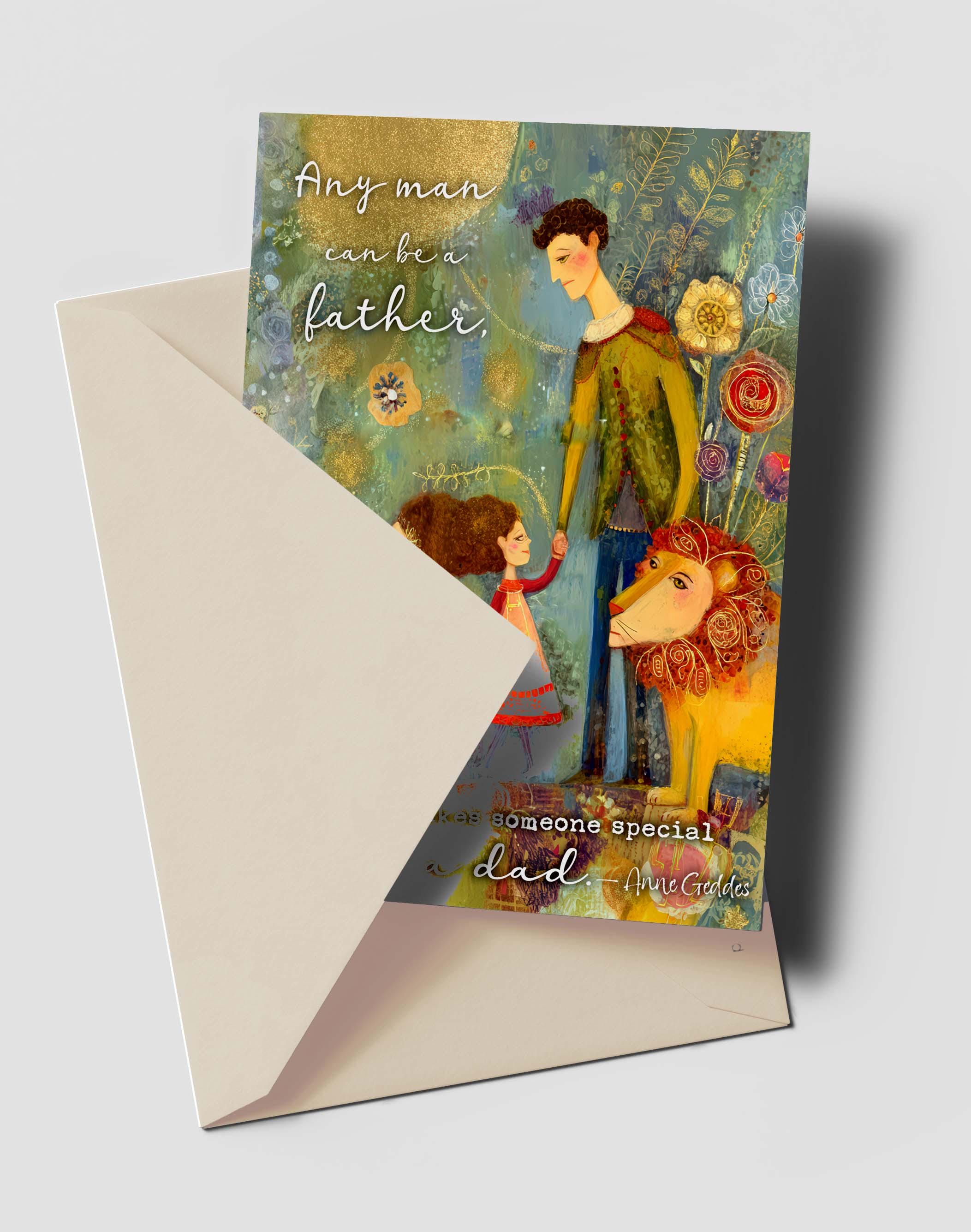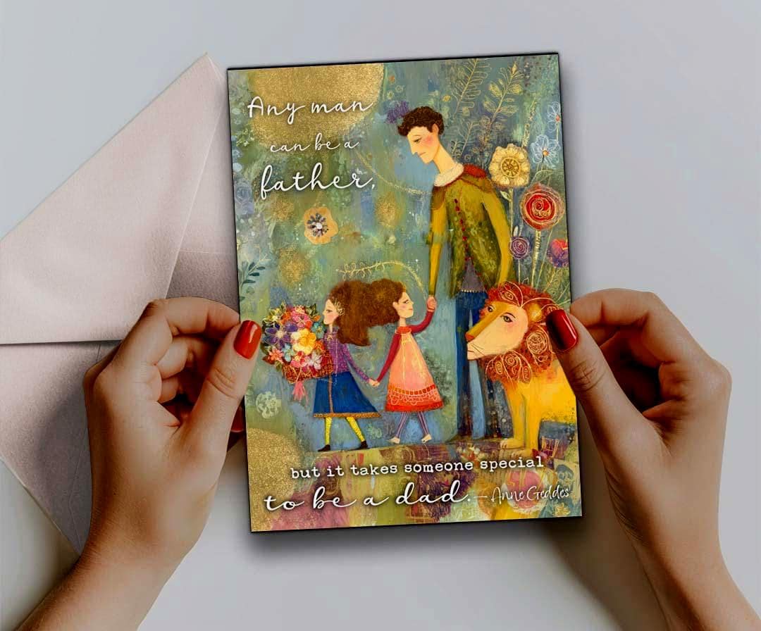 This whimsical greeting card captures a moment of simple, heartfelt connection. Whimsical Fatherโs Day Greeting Card โ "Anyone can be a Father"