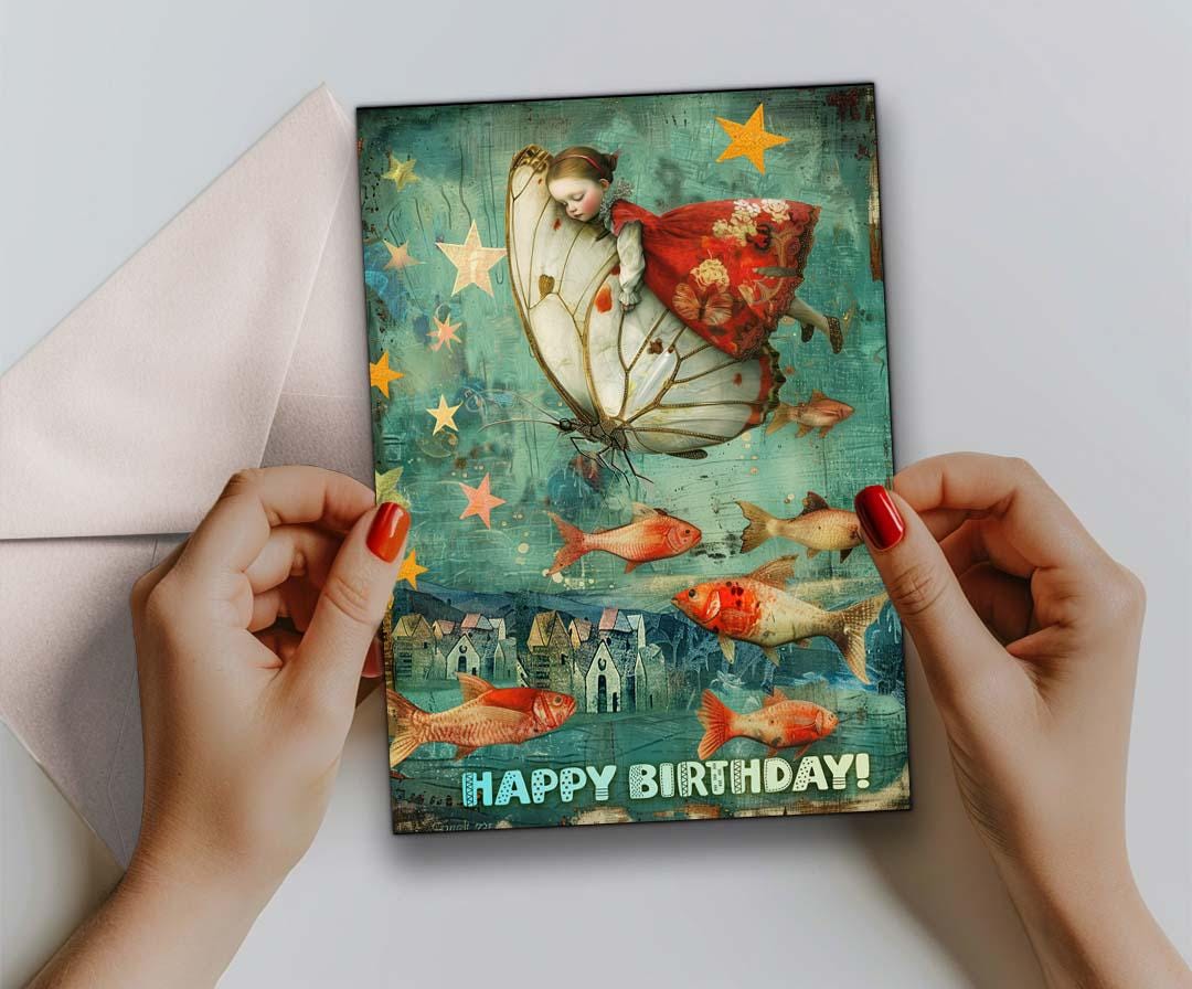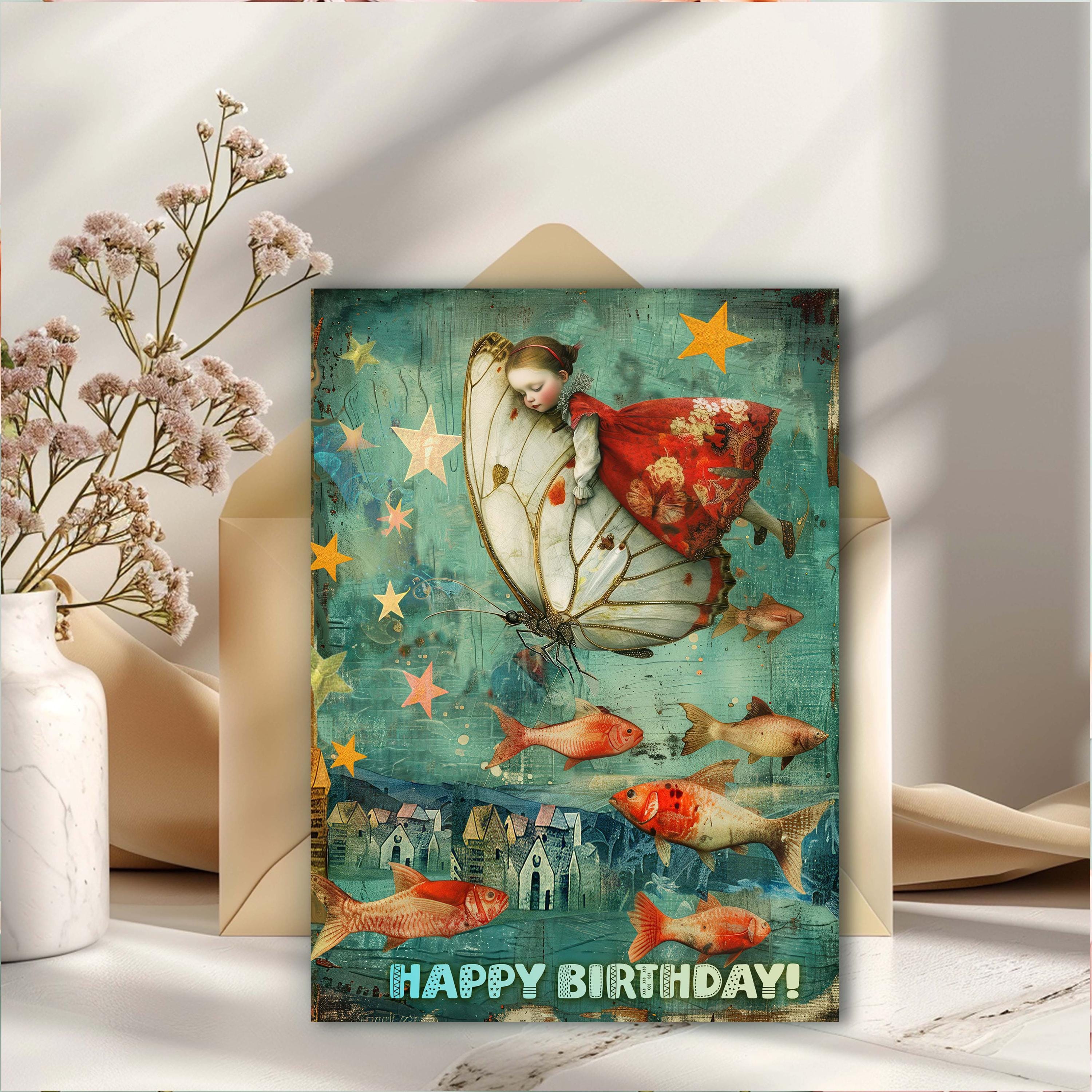 ๐ Whimsical Greeting Card โFly high, little dreamer!