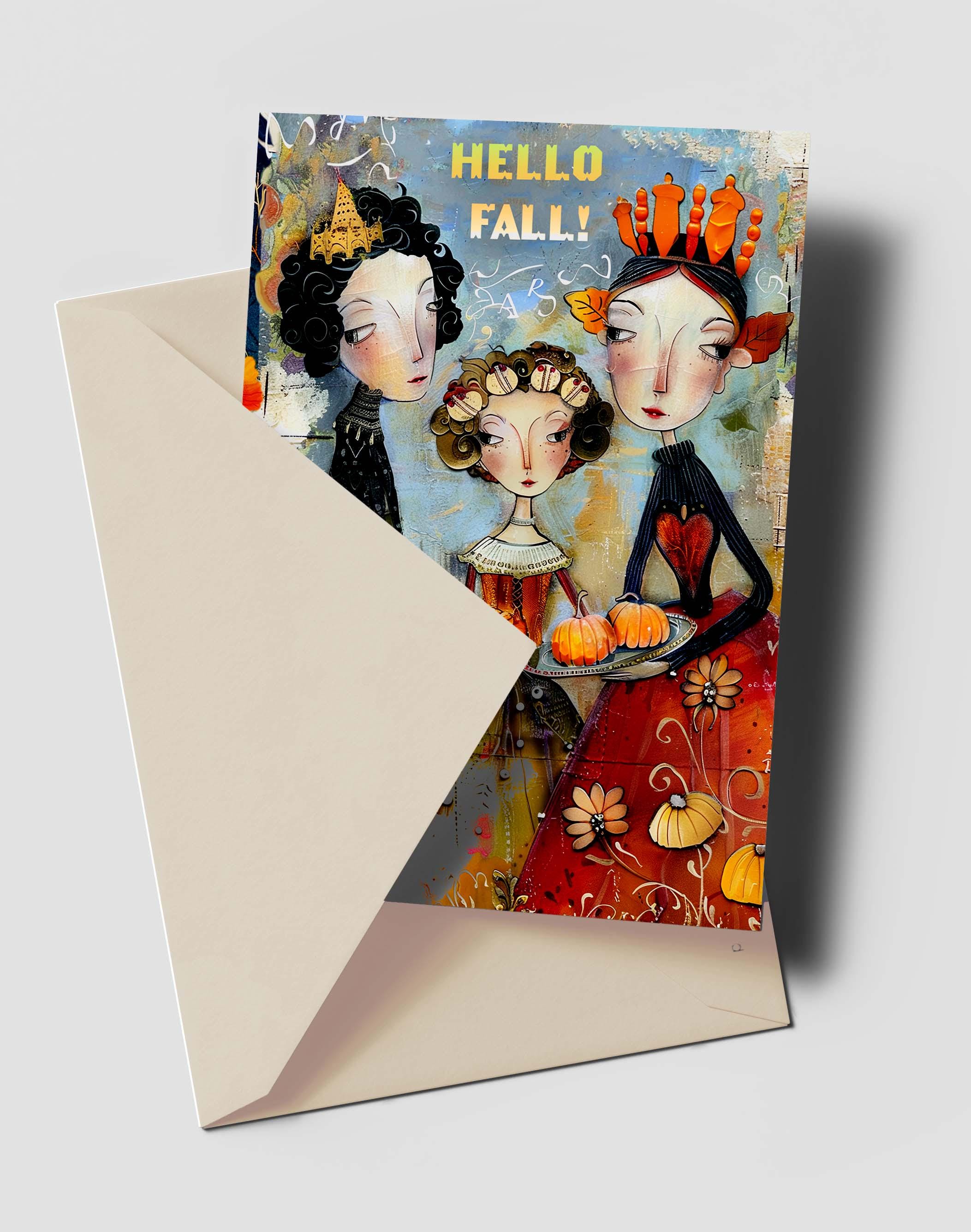 โค๐Welcome the season with charm and a touch of the wonderfully weird! This vibrant fall greeting card features three quirky, endearing charactersโa mismatched โfamilyโ of oddballs dressed in playful autumn attire, each proudly holding a plump pumpkin on a tray. Their exaggerated features and silly expressions bring joy and laughter, making them the perfect ambassadors of the season.