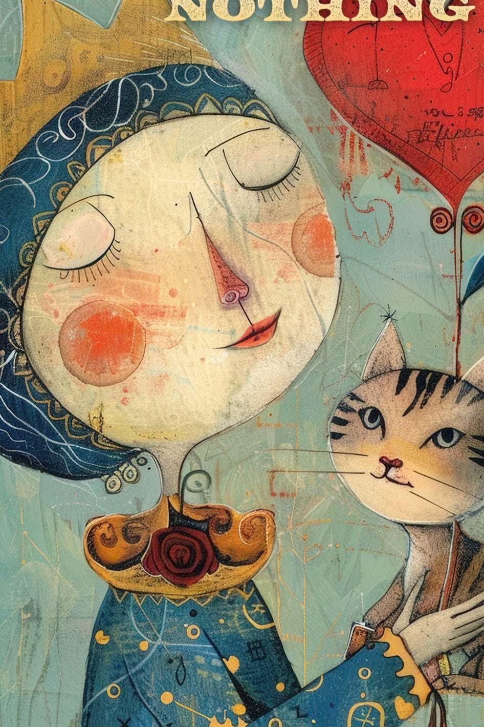 Celebrate love, friendship, and gratitude with this whimsical illustrated greeting card. A girl and her cat against a glowing yellow and blue background, creating a magical and heartfelt scene with a quote: "I wouldn't have nothing if I didn't have you."