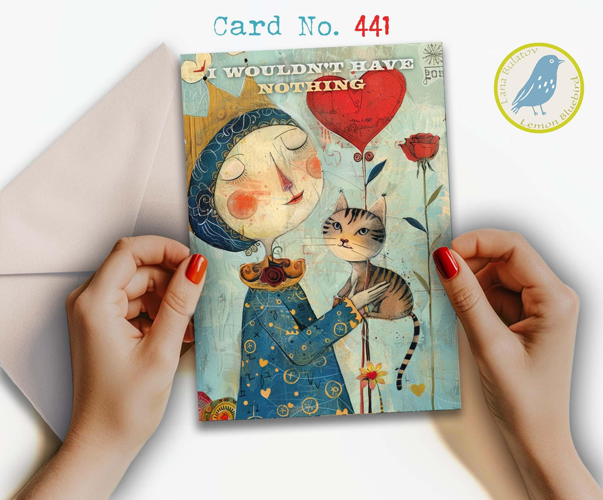๐ "I Wouldn't Have Nothing" Greeting Card โจ โ Girl & Cat Illustration ๐น๐