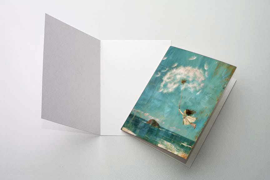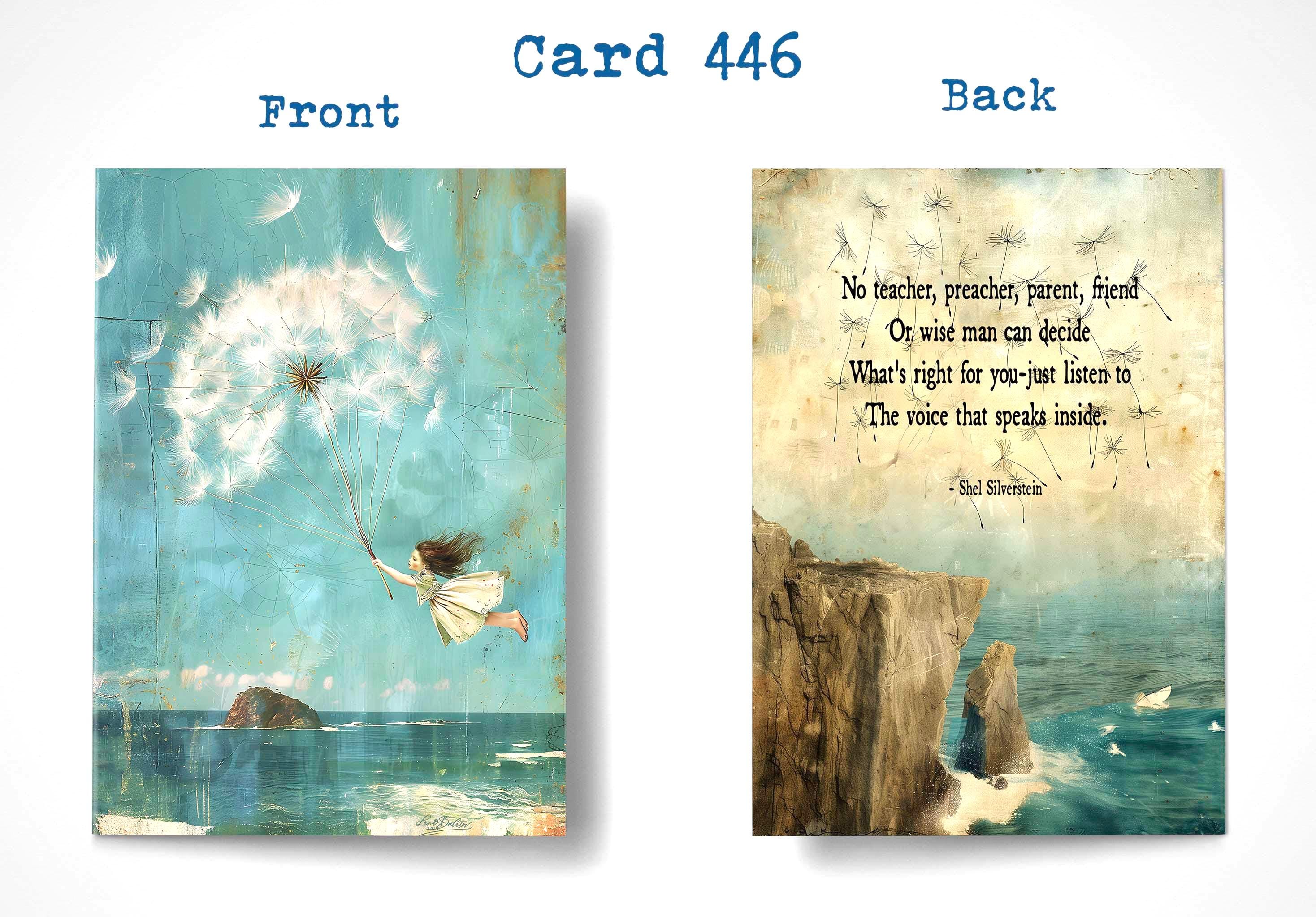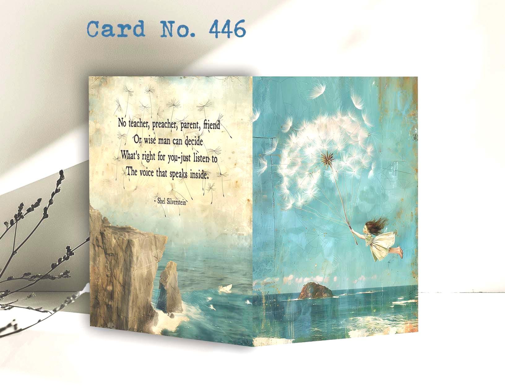 โ Bright, Inspirational Card with Flying Girl & Giant Dandelion โ Shel Silverstein: Quote