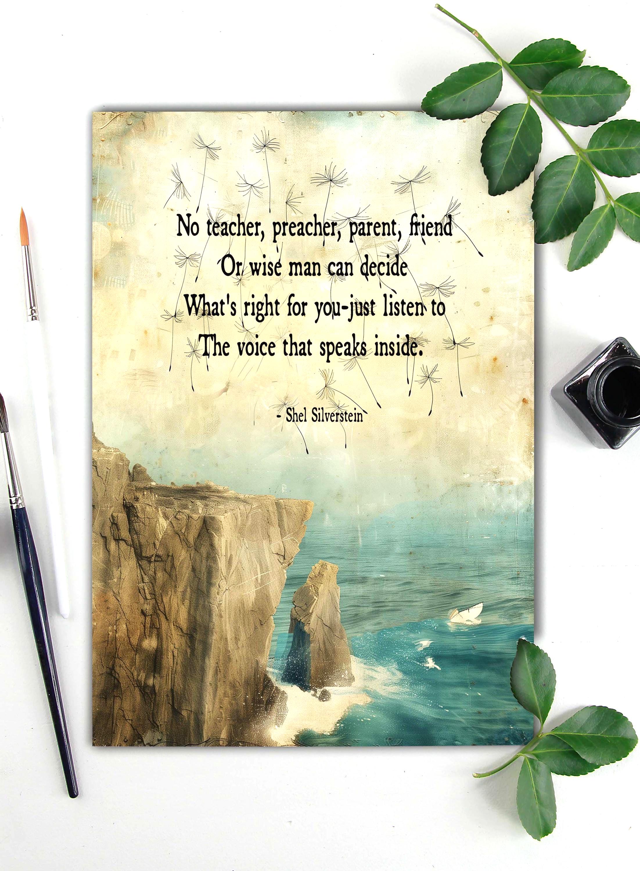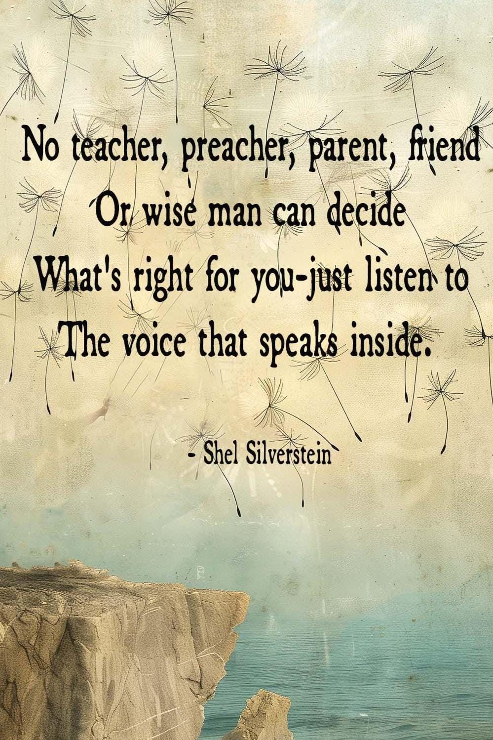 โNo teacher, preacher, parent, friend or wise man can decide whatโs right for you โ just listen to the voice that speaks inside.โ