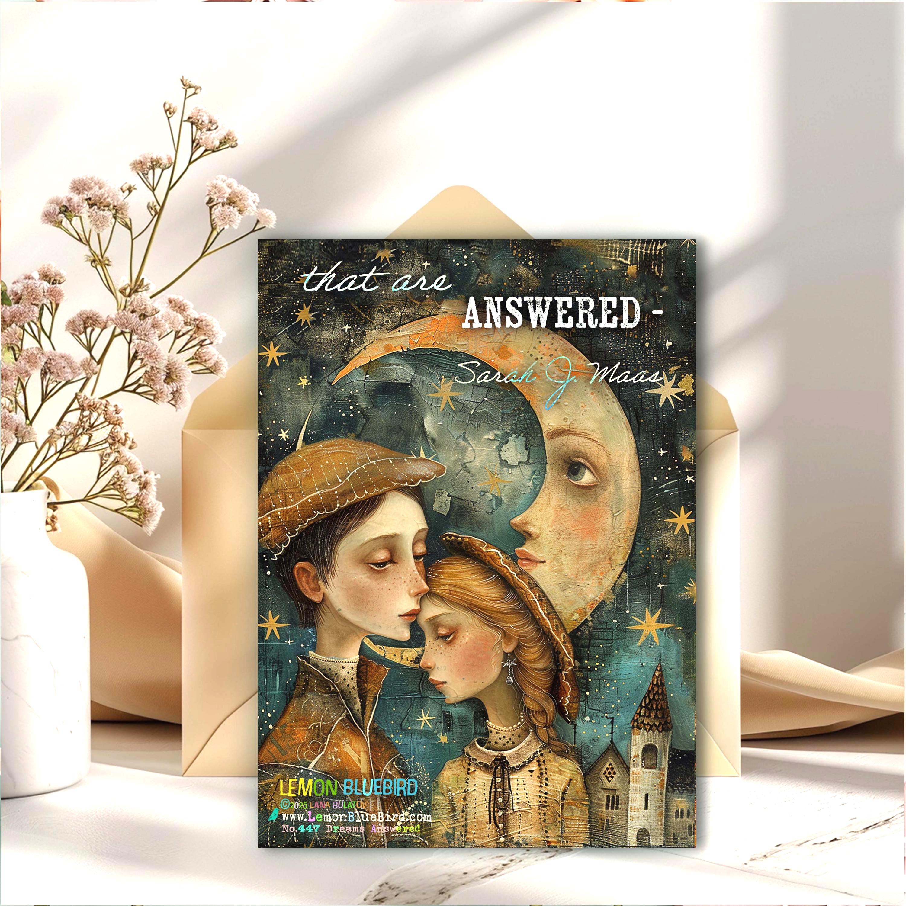 Perfect as a romantic moon card for anniversaries, weddings, or Valentineโs Day, this card is also a thoughtful choice for anyone who loves fantasy art, celestial themes, and enchanted love stories.