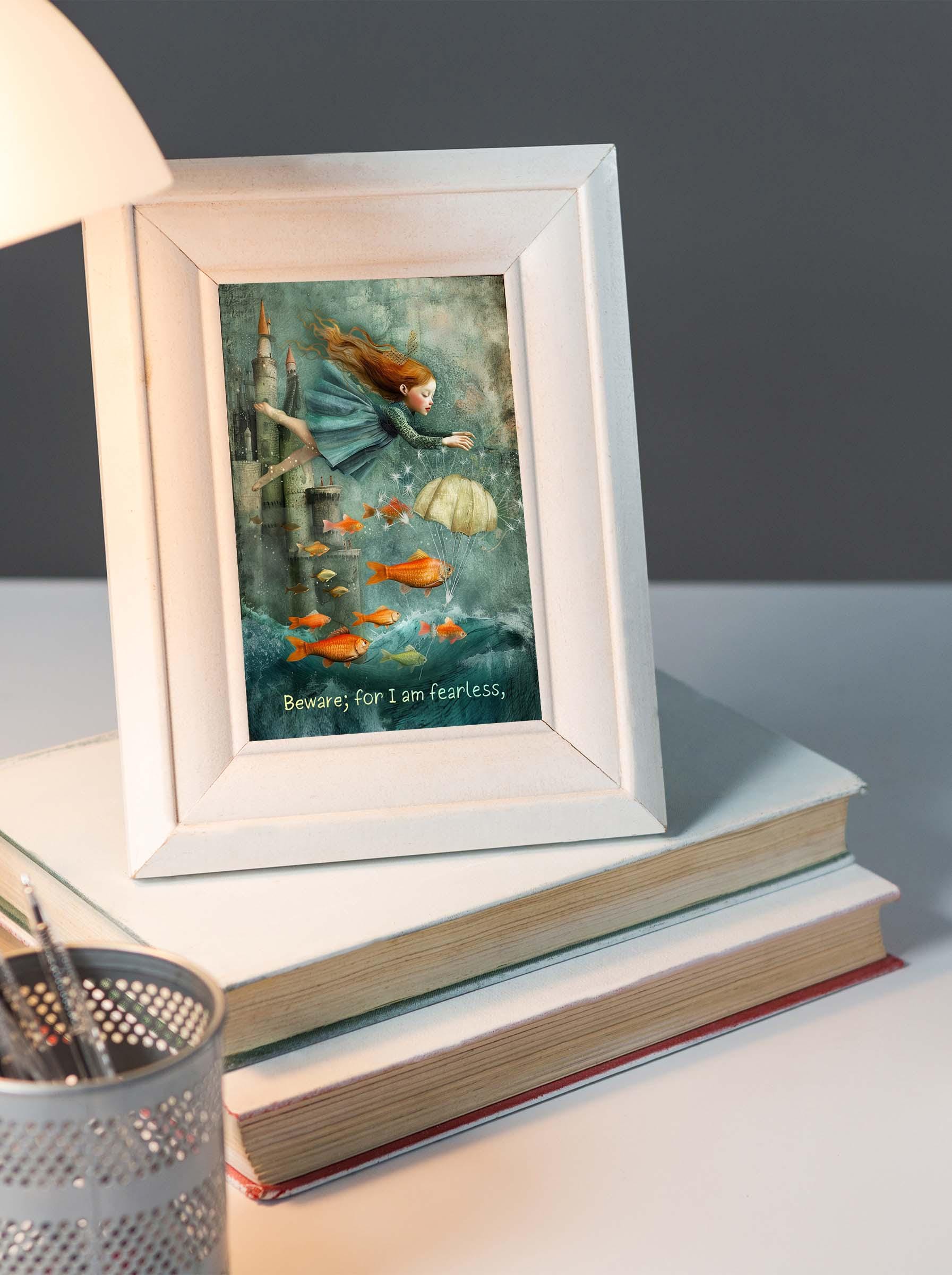 🐟 Whimsical Literary Greeting Card – “Beware; for I am fearless”