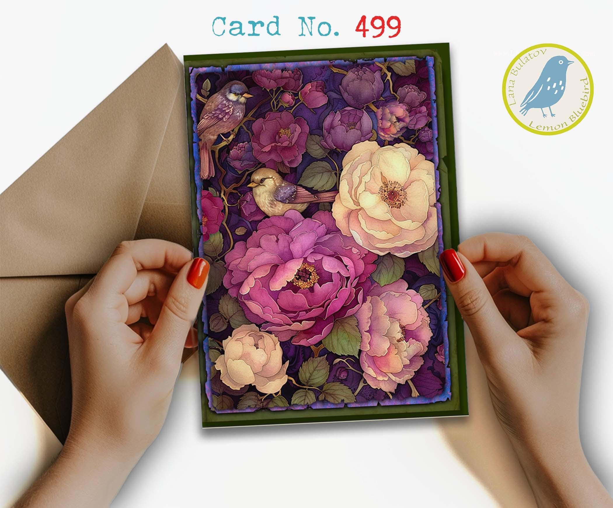 ๐ Flowers and Birds Greeting Card ๐, Whimsical Valentine Love Greeting Card No.499