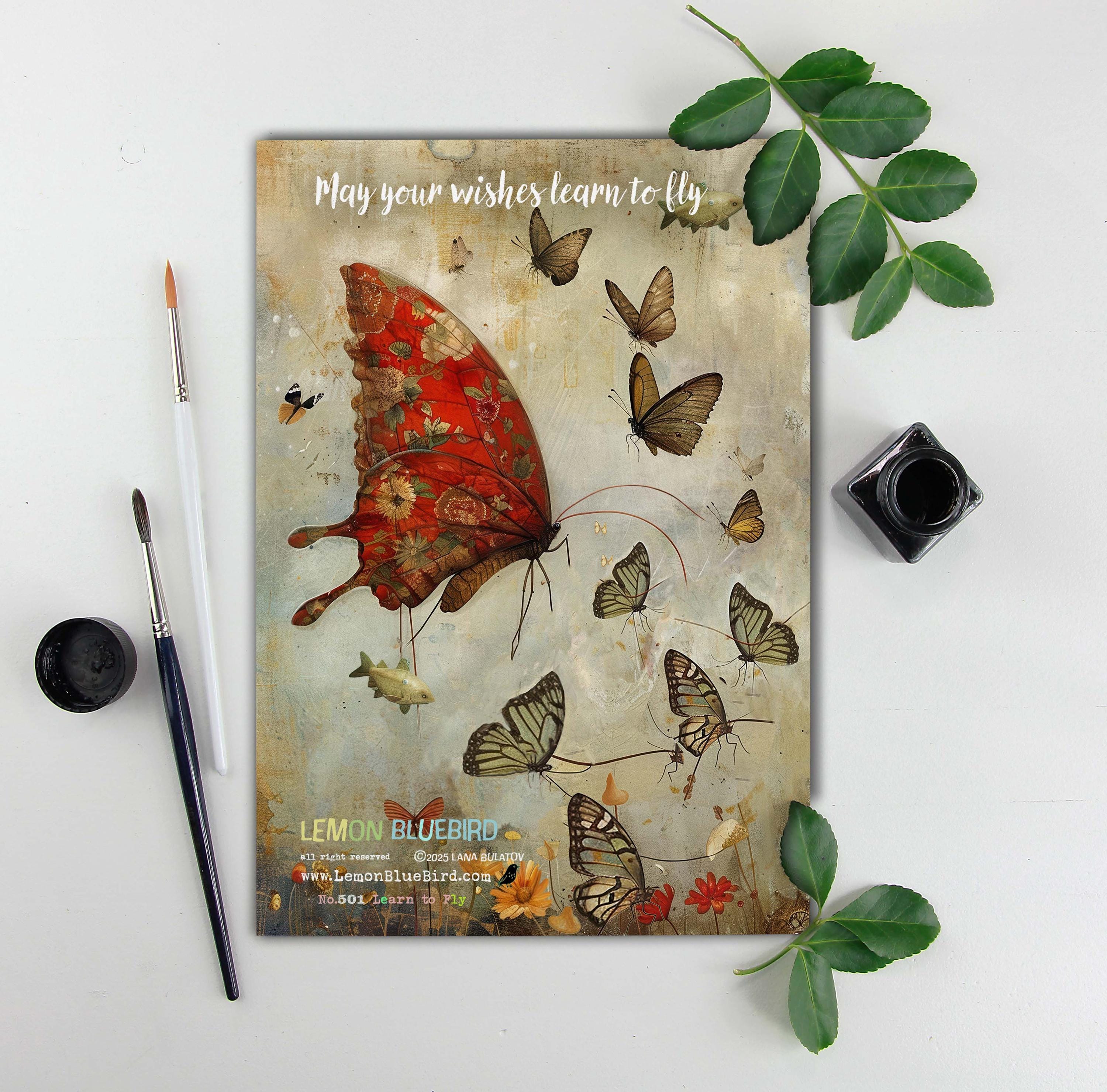 🟠Whimsical Greeting Card – May Your Wishes Learn to Fly